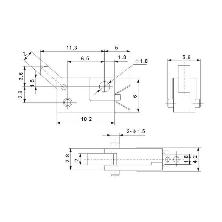 KFC-V-101 Micro Switch 2-Pin NO 2 Pinli detector switch. Normalde açık devre olan ürüne basıldığında devre kapanmakta ve enerji akışı sağlanmaktadır. Pin: 2 Pin 1No COM Akım / Gerilim: 30V DC 0.1A Boyutları: 10.2x6x4mm (pinler hariç) Min. Anahtar Ömrü: 50.000 döngü.