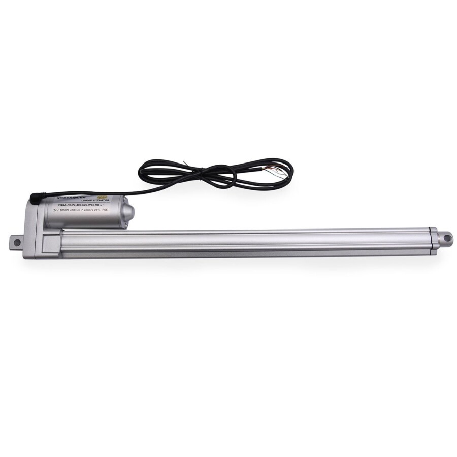 KGRA 24V 400MM 2000N IP65 Hall Sensörlü Lineer Motor KGRA lineer motor, 2000N kapasiteye sahip, saniyede 7.2mm hareket kapasiteli bir lineer motordur. Başlangıç noktasında ve bitiş noktalarında bulunan limit switchler sayesinde bu noktalara geldiğinde yüksek akım çekmez ve motor zorlanmaz. KGRA lineer motorların içerisinde hall sensör bulunmaktadır. Bu sayede hassas konumlandırma gereken yerlerde de kullanıma uygundur. Özellikler: Besleme Voltajı: 24V DC Güç: 2000N Hız: 7.2mm/s Hareket Mesafesi: 400mm Limit Switch: Var Kablo Bağlantıları: Kırmızı: +24V Siyah: GND -24V Sarı: +5V Beyaz: GND Kahverengi: H1 Yeşil: H2