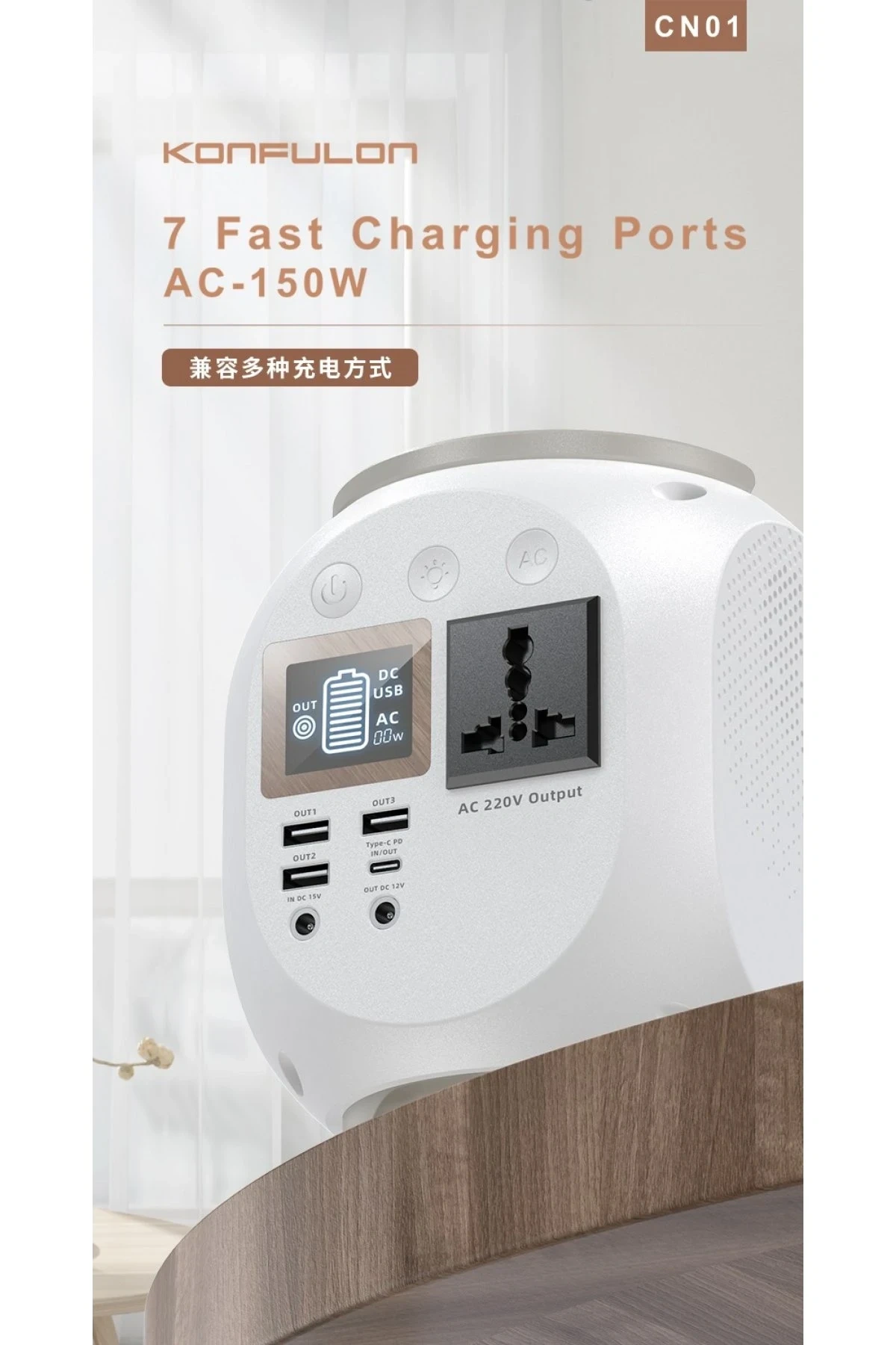 Konfulon CN01 Powerbank 45.000 mAh Kamp Şarj PD - Beyaz