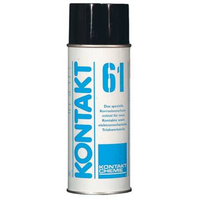 - KONTAKT 61 nemi uzaklaştırır ve mikron inceliğinde bir yağlayıcı ve koruyucu film oluşturur. Normal şartlar altında, bu film elektrik iletkenliğini etkilemez. Ancak çok düşük Voltajlarda, örn. <1 volt, alan kuvvetinin yağ filmini kırmak için yetersiz olması mümkündür. Bu durumlarda bireysel test gereklidir.