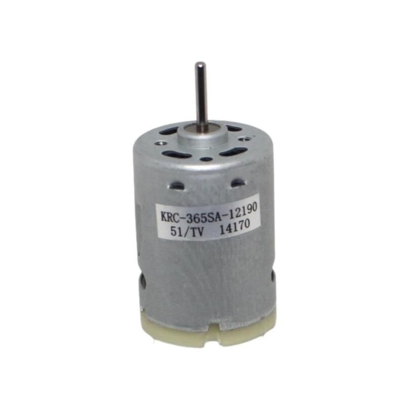 KRC-365SA 12V 14000RPM DC Motor KRC-365SA, yüksek hızlı redüktörsüz bir dc motordur. Çeşitli elektronik projelerde kullanıma uygundur. Özellikler: Besleme Voltajı: 12V DC Hız: 14000 RPM Mil Çapı: 2.3mm Mil Uzunluğu: 13mm Gövde Uzunluğu: 37.8mm Motor Çapı: 27.7mm