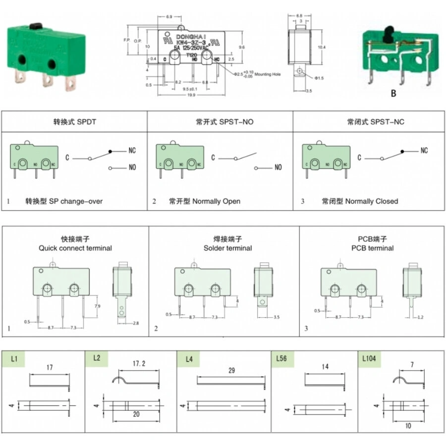 KW4-3Z-3-B222023L2 SPST NO 2-Pin Micro Switch