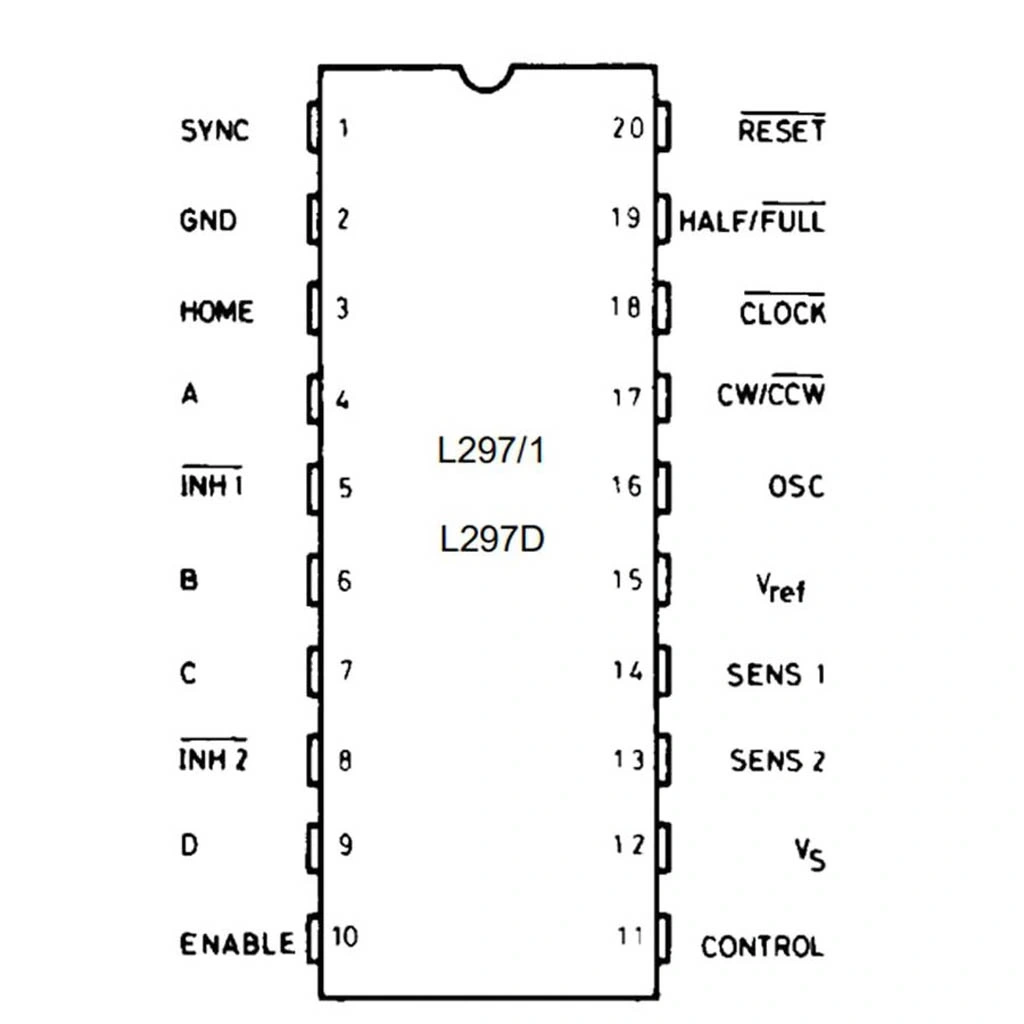 L297, step motor kontrol uygulamaları için tasarlanmış özel bir motor sürücü entegresidir. DIP-20 paketinde sunulan bu entegre, unipolar ve bipolar step motorları kontrol etmek için gereken tüm lojik fonksiyonları tek bir pakette birleştirir.