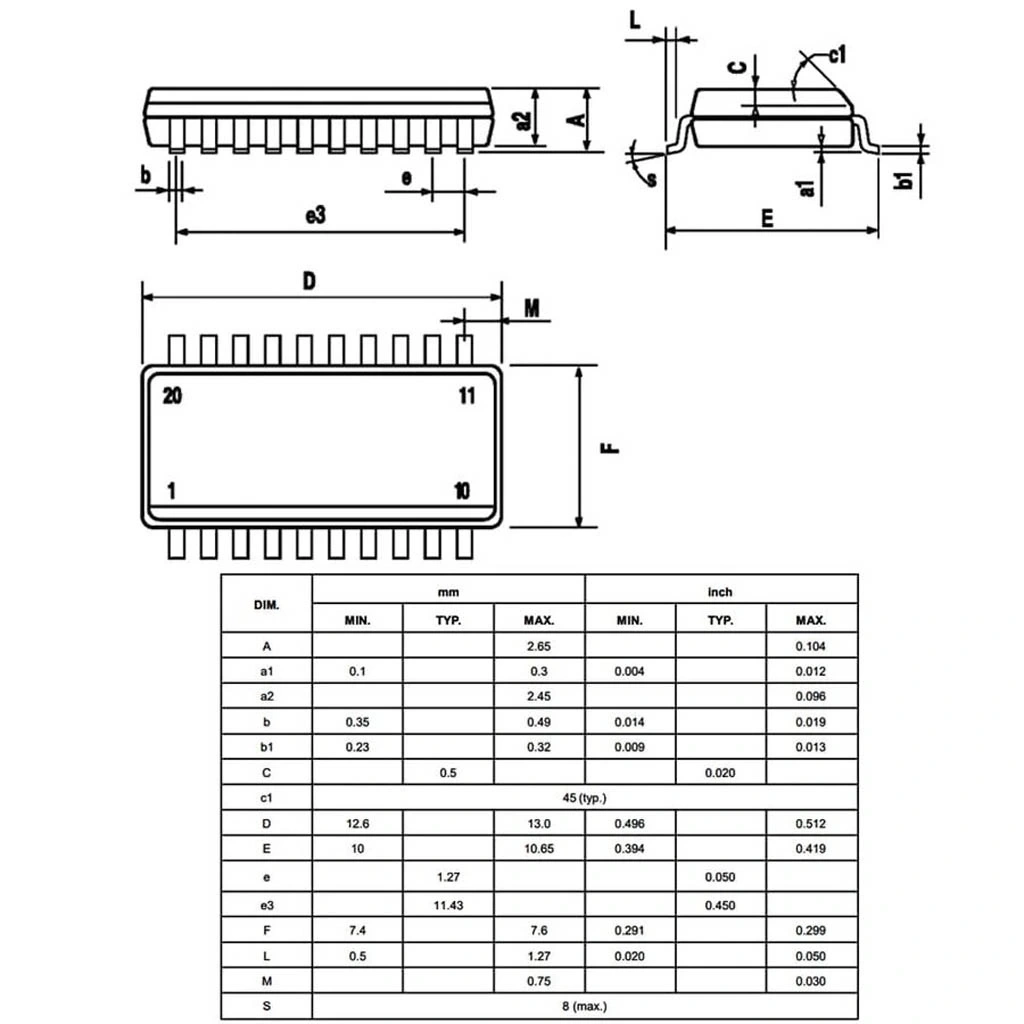 - Paket Tipi: SOIC-20 (SMD)