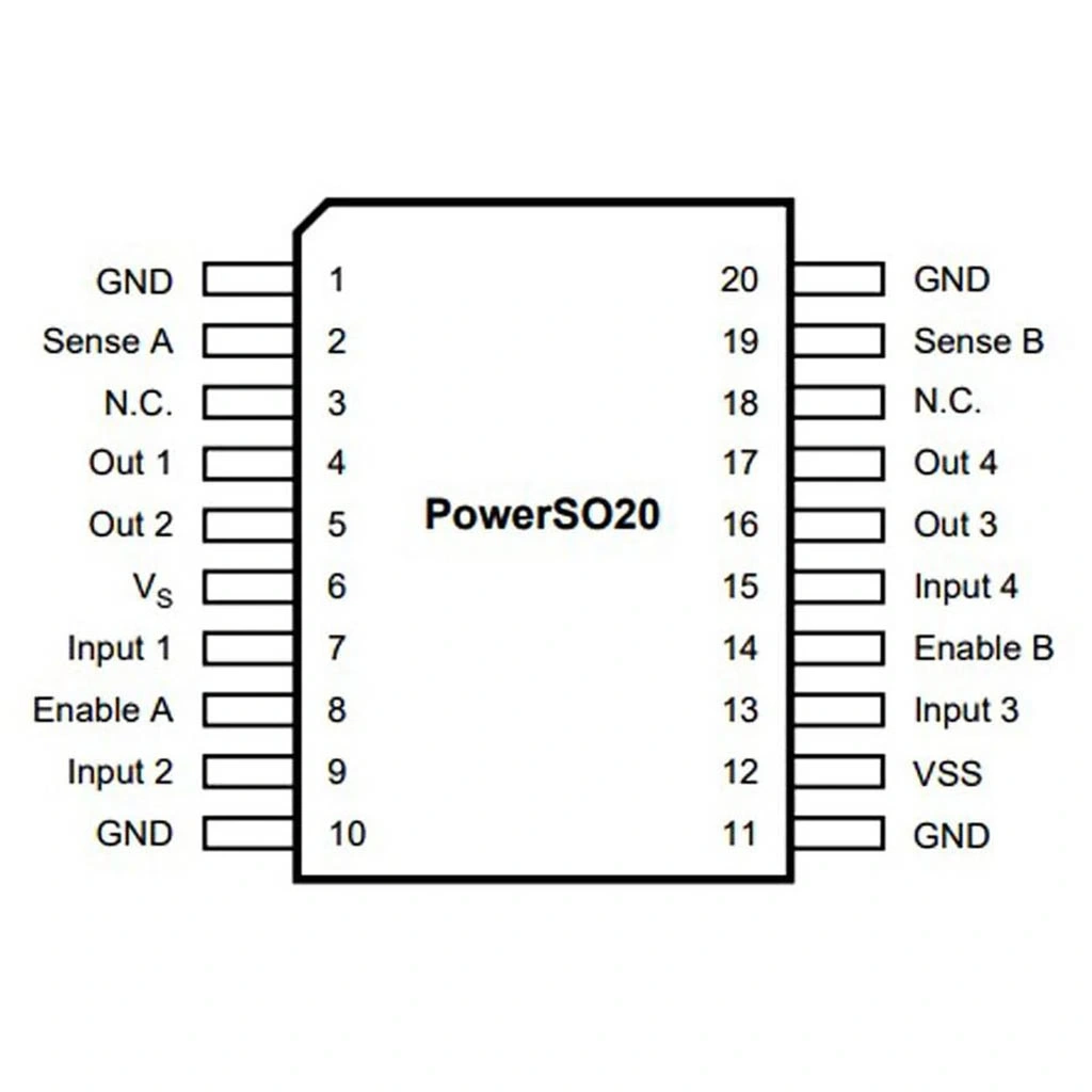 L298P, çift H-köprü yapısına sahip yüksek voltaj ve yüksek akım motor sürücü entegresidir. PowerSO-20 paketinde sunulan bu entegre, DC motorları veya step motorları kolayca kontrol etmek için tasarlanmıştır.