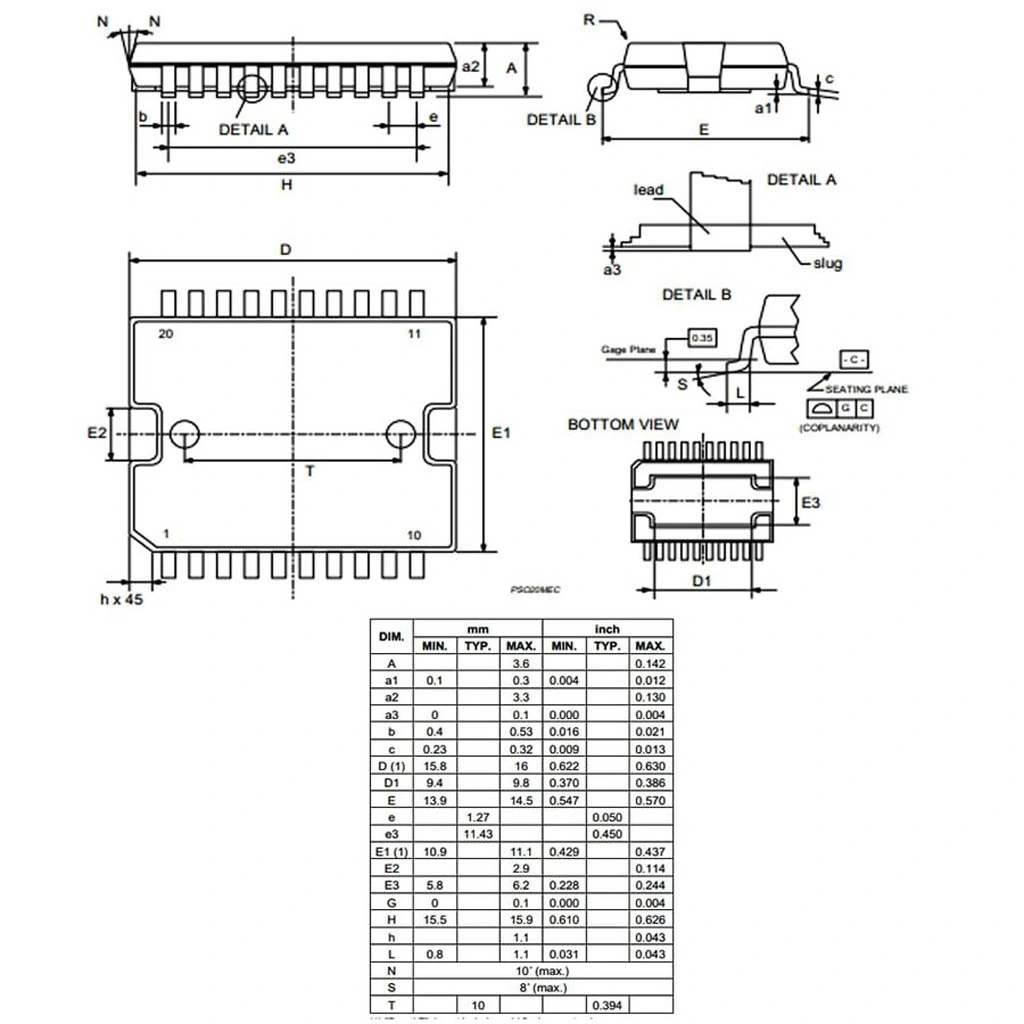 L298P SMD Motor Sürücü Entegresi PowerSO-20'nin detaylı teknik özellikleri aşağıda listelenmiştir.