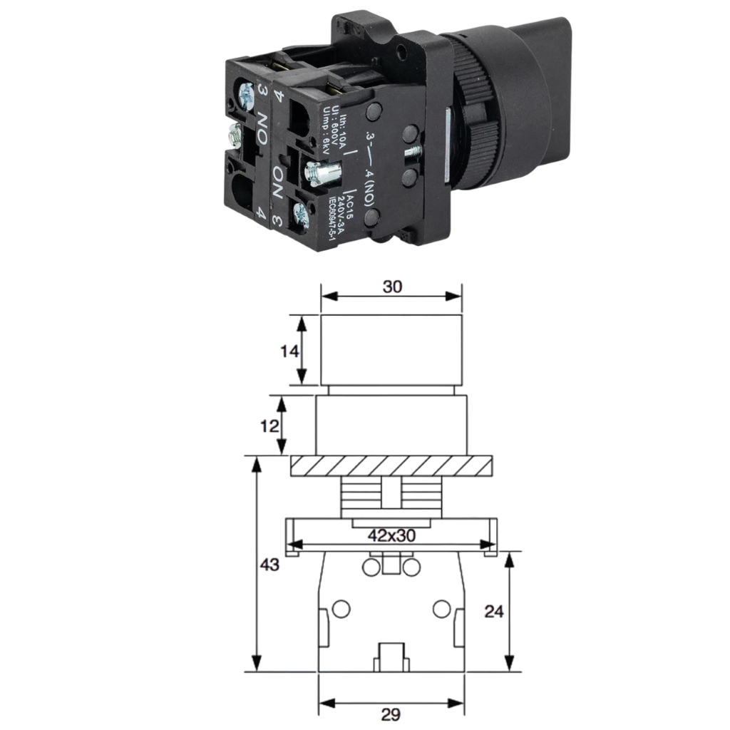 LAY5-ED33, 22mm çapında, kısa mandallı ve 1-0-2 pozisyonlarında kalıcı olarak çalışan bir anahtardır. 2 adet normalde açık (2NO) kontağa sahiptir ve endüstriyel otomasyon, makine kontrol sistemleri ve elektrik panolarında yönlendirme veya seçim anahtarı olarak kullanılır.