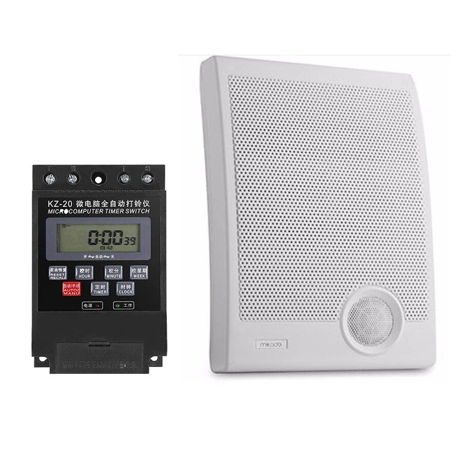 LC-308S KZ-20 Zaman Kontrollü Duvar Hoparlörü LC-308S KZ-20 Zaman Kontrollü Duvar Hoparlörü, genellikle fabrika, okul vb. yerlerde kullanılan kontröllü duvar hoparlörüdür. Kontrolcüsü üzerinden çalacağı zamanlar belirlenebilmektedir. Günde 20 defaya kadar ayar yapılabilmektedir. Gün içerisindeki belirli saatlerde ve haftada her gün veya belirli günler çalsın olacak şekilde ses çıkışı ayarlanabilmektedir. Ürün içeriğinde 1GB flash bellek bulunmaktadır. Hoparlörün arka kısmında usb girişi bulunmaktadır. Flash belleğe yüklediğiniz sesi hoparlörün usb kısmına bağlayarak istenilen saatlerde ses çıkışı alınabilmektedir. Kontrolcünün detaylı kullanımı için aşağıdaki kılavuzu incelemelisiniz. Paket İçeriği 6" Hoparlör 1GB Flash Bellek Zaman Kontrolcüsü Hoparlör Özellikleri Giriş Gerilimi: 220VAC Güç: 10W Ses Seviyesi: 91dB ±1 Boyut: 185x120x26mm Bağlantı Kontrolcü Özellikleri Model: KZ-20 Voltaj: AC 220V 50HZ Güç:.