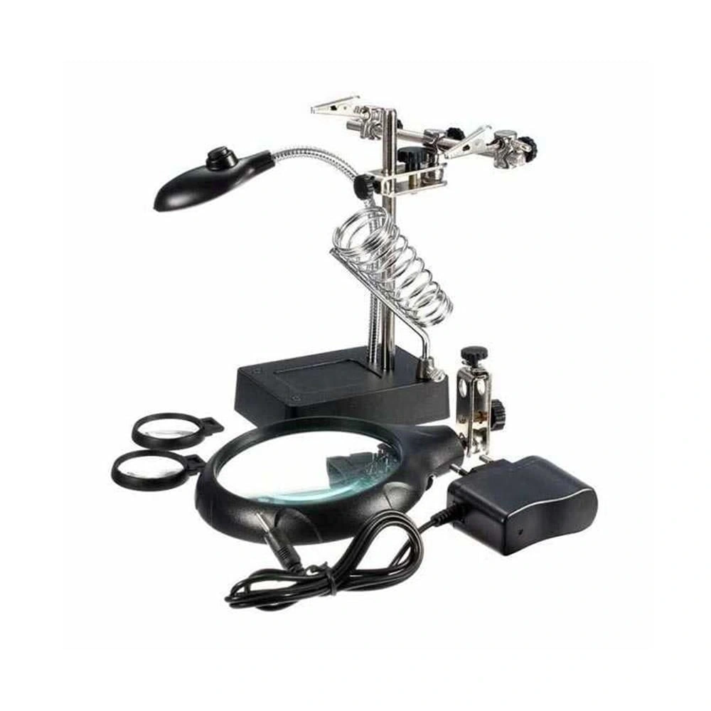 Led ışıklı büyüteçli ve mercekli havya sehpası, elektronik tamir işlemleri sırasında hem işlevsellik hem de konfor sağlayan çok yönlü bir yardımcı ekipmandır. Gelişmiş optik büyüteç özelliği, küçük devre elemanlarının net şekilde görülmesini sağlarken, LED aydınlatması karanlık ortamlarda dahi detayları ön plana çıkarır. Aynı zamanda lehimleme işlemlerinde sabitleyici kıskaçları sayesinde hassas işlemleri kolaylaştırır.