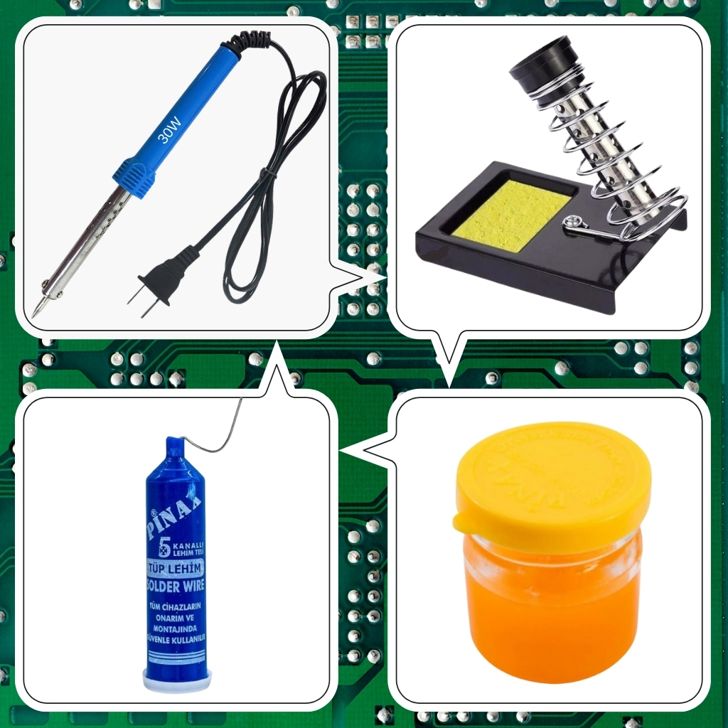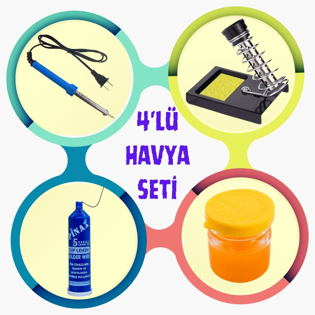 Lehimleme Başlangıç Seti (Havya, Tüp Lehim, Lehim Pastası, Havya Sehpası)