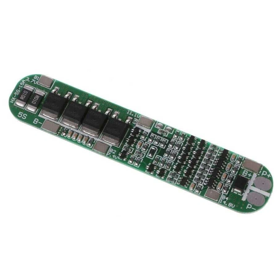 LiPo & Lion & 18650 5S Batarya Şarj Devresi HX-5S-15A devresi; Lipo, Lion, 18650 gibi şarj edilebilir pillerinizi şarj edebileceğiniz aşırı akımdan koruyabileceğiniz koruyuculu bir şarj devresidir. 5s'e kadar 3,7v 7,4v 11,1v 14,8v 18,5v Pillerinizi şarj edebilirsiniz. Teknik Özellikler: Şarj gerilimi: 21 V Şarj akımı: 15A (max) Aşırı şarj koruması Aşırı şarj algılama: 4.28 ±0. 05 V Gecikmeyi koruyun: 0.5 s Aşırı şarj sürüm: 4.28 ±0. 05 V Aşırı deşarj koruması Aşırı deşarj algılaması: 2.55 ± 0. 08 V Aşırı deşarj algılama gecikmesi: 0.1 s Serbest bırakma voltajı: 2.9 ± 0. 1 V Kısa devre koruması.