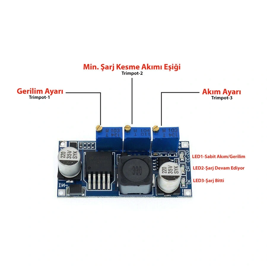 - Entegre Çipi: LM2596S-ADJ (SO-8 SMD Paket)