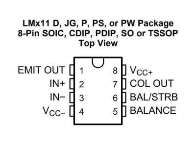 LM311 yüksek hızlı Voltaj karşılaştırıcılarıdır. Operasyonel amplifikatörler için ± 15-V beslemeleri ve mantık sistemleri için 5-V beslemeleri de dahil olmak üzere çok çeşitli güç kaynağı Voltajlarından çalışmak üzere tasarlanmıştır. Çıkış seviyeleri çoğu TTL ve MOS devresi ile uyumludur. Lambaları veya röleleri ve 50 mA'da 50 V'a kadar anahtarlama Voltajlarını çalıştırabilir. Tüm girişler ve çıkışlar sistem topraklamasından izole edilebilir. Çıkışlar toprak, VCC + veya VCC? referanslı yükleri çalıştırabilir.