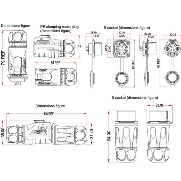 LP-20-C09SX-03-101 9-Pin Su Geçirmez Konnektör - Erkek Güç uygulamaları için 9 pinli erkek konnektördür. 24-26 AWG kablo ile uyumludur. LP serisi, yüksek performanslı plastiklerinden yapılmış en çok satan seri su geçirmez konektörlerden biridir. Hızlı tak-çıkar fiş tasarımı, tek elle takıp/çıkarmaya izin verir. Bağlantı pinleri korozyona dayanabilen ve yüksek-düşük sıcaklıklar için uygun olan altın kaplama teknolojisini benimsemiştir. LP-20 serisi konektörler, küçük boyutları, esnek çalışmaları ve otomatik takma ve çıkarmaları nedeniyle görsel-işitsel ekipman, tıbbi ekipman, endüstriyel kontrol, muayene ve ölçüm gibi çeşitli zorlu ortamlarda ve durumlarda yaygın olarak kullanılmaktadır. Kompakt bileşenler, basit kullanım, hızlı ve kararlı bağlantı, IP67 dereceli dış mekan su geçirmezlik performansı ile uluslararası endüstriyel ekipmanların çevre koruma gereksinimlerini karşılar. LP-20-J09PE-01-021 9-Pin Su Geçirmez Konnektör - Dişi ile uyumludur. CNLINKO ürünlerinde isteğinize bağlı kablolu üretim yapılabilir. Özel üretim toplu alımlar için geçerlidir. Özel istekleriniz için [email protected] ‘a mail atabilirsiniz. Teknik Özellikler Daha fazla korozyon koruması için altın kaplama kontaklar PBT kabuğu Yüksek sıcaklık ve basınç direnci Bağlandığında IP65/67 sınıfı Pin Sayısı: 9 Pin Çapı - 1 mm Kablo Bağlantısı - 24-26 AWG Anma Akımı - 5 Amper Çalışma Gerilimi - 400V AC Kontak Direnci -.