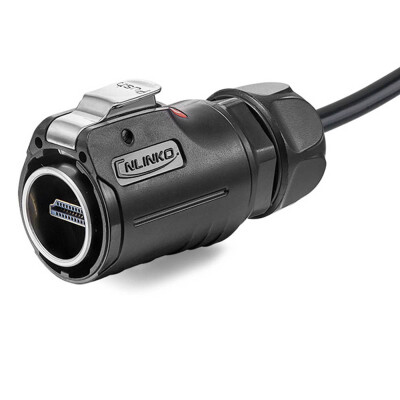 Güvenli sinyal ve veri iletimi için hızlı kilitli LP-24 HDMI yüksek performanslı HDMI konektörü. Altın kaplamalı kontaklara sahip siyah plastik yapı, uzun bir servis ömrü sağlar. HDMI konektörü IP67 koruma sınıfına uygun olarak suya ve toza dayanıklıdır. Metal kilit güvenli bir bağlantı sağlar ve veri ve güç kesintilerine karşı koruma sağlar. Veri konektörü için maksimum nominal güç 0,5 amperdir. Fişin hızlı bir fiş bağlantısı vardır. Hızlı bağlantı tasarımı, tek elle takılıp çıkarılmasına olanak tanır.