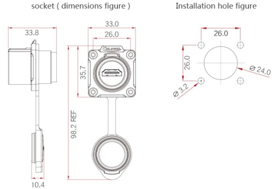 LP-24-J/HDMI2/213/SX-43-401 Su Geçirmez HDMI Konnektör - Dişi