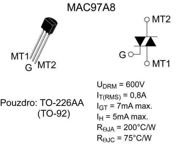 MAC97A8 - TO92 0.6A 600V Triyak Doğrudan mikrodenetleyiciler, lojik entegre devreler ve diğer düşük güçlü geçit tetikleme devreleriyle arayüzlenmesi amaçlanan lojik seviyeye duyarlı kapı triyak. Kullanım Alanları Genel amaçlı çift yönlü anahtarlama Faz kontrolü uygulamaları Solid State röleleri Ürün Kodu MAC97A8 Vdrm 600V I t(rms) 0.6A I tsm 8A Paket Tipi TO-92 MAC97A8 Datasheet.
