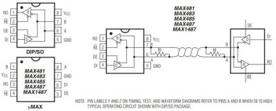 MAX481, MAX483, MAX485, MAX487 – MAX491 ve MAX1487, RS-485 ve RS-422 iletişimi için düşük güçlü alıcı-vericilerdir. Her parça bir sürücü ve bir alıcı içerir.