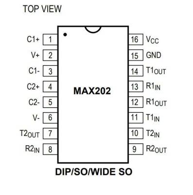 MAX202EPE, 16 pinli DIP paketinde dört 0.1µF harici kapasitörlü +5V, RS232 alıcı-vericidir. Tekli +5V besleme işlemi için entegre şarj pompası devresine sahip bir RS232 ve V.28 alıcı-vericisidir. Şarj pompası Voltaj dönüştürücüler, sürücüler (vericiler) ve alıcılar olmak üzere üç bölümden oluşur. Entegre şarj pompası devresi, bipolar ±12V besleme ihtiyacını ortadan kaldırır ve +5V veya 9V\\\'dan +12V\\\'a kadar tek besleme çalışmasını sağlar. Sürücü, EIA/TIA-232E spesifikasyonuna uygun olarak yüklendiğinde 120Kbps\\\'yi aşan veri hızlarında ±5V EIA/TIA-232E çıkış sinyali seviyelerini korur.