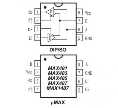 MAX483, RS-485 ve RS422 iletişimi için düşük güçlü alıcı-vericilerdir. Her parça bir sürücü ve bir alıcı içerir. MAX483, EMI'yi en aza indiren ve yanlış sonlandırılan kabloların neden olduğu yansımaları azaltan, böylece 250 kbps'ye kadar hatasız veri iletimine izin veren azaltılmış dönüş hızı sürücülerine sahiptir.
