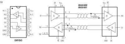 MAX481, MAX483, MAX485, MAX487 – MAX491 ve MAX1487, RS-485 ve RS-422 iletişimi için düşük güçlü alıcı-vericilerdir. Her parça bir sürücü ve bir alıcı içerir.