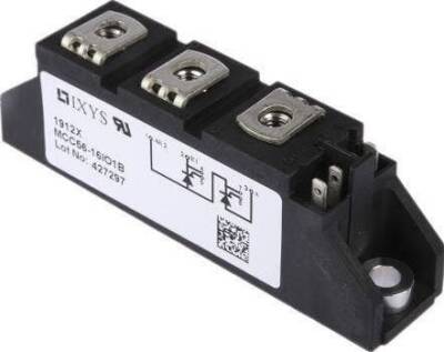 MCC56-08İO1B Tristör Modül 2X60A 800V. Alternatif akımı (AC), doğru akıma (DC) dönüştürmek amacıyla kullanılan bir devre elemanıdır.