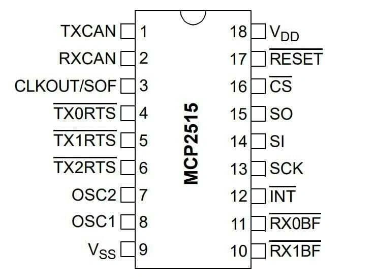 MCP2515-I/SO SOIC-18 SMD CAN Bus Entegresi