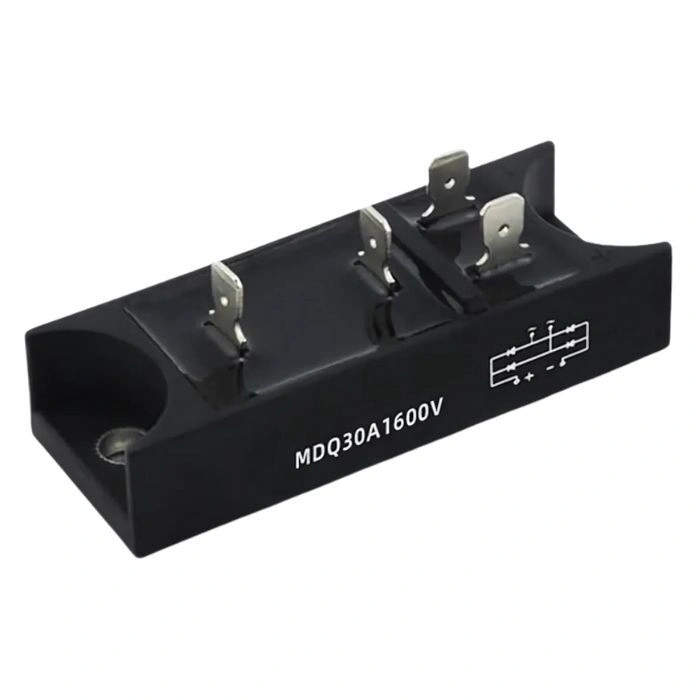 MDQ30-16 30A 1600V Tek Faz Köprü Diyot MDQ30-16 30A 1600V Tek Faz Köprü Diyot, 30A'ya kadar yük ve 1600V'a kadar olan DC ve AC devrelerinde kullanılır. Diyot köprüleri, cihazın mevcut ekipmana kolayca entegre edilmesini sağlayan standart bir endüstriyel kasada yer alır. Devrenin "~" girişine alternatif bir akım verilir. 81x30x18mm boyutlara sahiptir. Tek Fazlı Köprü Diyotlar genellikle güç ekipmanlarında, güç kaynakları için doğrultucu; değişken frekanslı sürücüler için giriş doğrultucu; akü şarj doğrultucu olarak kullanılmaktadır..