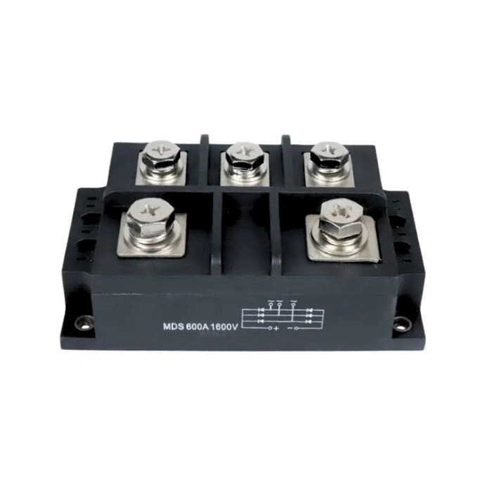 MDS600-16 600A 1600V 3 Faz Köprü Diyot MDS600-16 600A 1600V 3 Faz Köprü Diyot, 600A'ya kadar yük ve 1600V'a kadar olan DC ve AC devrelerinde kullanılır. Diyot köprüleri, cihazın mevcut ekipmana kolayca entegre edilmesini sağlayan standart bir endüstriyel kasada yer alır. Devrenin "~" girişine alternatif akım verilir. 142x85x48mm boyutlarındadır..