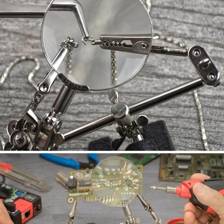 MG 08 Mercekli Havya Sehpası Havya Standı ZD-10D, lehimleme işlemlerini kolaylaştırmak için tasarlanmış, büyüteçli ve entegre havya tutucu özelliğine sahip çok fonksiyonlu bir lehimleme yardımcısıdır. Çalışma alanınızı organize ederken, havyanızı güvenli şekilde tutacak bir alan sağlar ve aynı zamanda dahili büyüteç lensi ile hassas elektronik komponentlerin montajını kolaylaştırır.