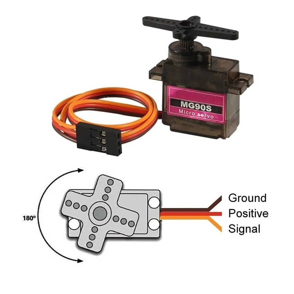 Hız ve tork, MG90S, hızlı ve güçlü bir motor olarak bilinir. Yaklaşık olarak 0.12 saniyede 60 derece dönme hızına ve yaklaşık 2.2 kg/cm torka sahiptir.Gerilim, Bu servo motor için genellikle 4.8V ila 6V arasında bir gerilim kullanılır.Kontrol, MG90S, genellikle PWM (Pulse Width Modulation) sinyalleri kullanılarak kontrol edilir.Arduino, Raspberry Pi gibi mikrodenetleyiciler veya servo kontrol panelleri gibi çeşitli cihazlar aracılığıyla kontrol edilebilir.