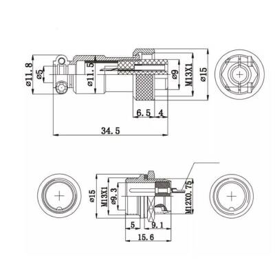 Mike Konnektör 3-Pin 12mm - Erkek