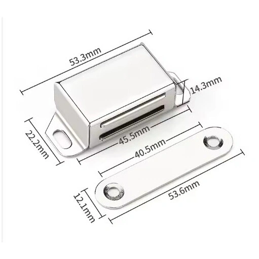 Mıknatıslı Metal Mobilya Kapak Kilidi 36x24x14mm - Krom Mıknatıslı Metal Mobilya Kapak Kilidi 36x24x14mm, mobilyalarda, sinekliklerde, dolap kapaklarında ve duşakabin kapısı vb. kapılarda kullanılabilmektedir. Karavanlarda, mutfaklarda sıklıkla tercih edilmektedir. Bebeklerin dolap kapaklarını açmamaları içinde kullanılabilir. Kullanımı kolaydır karşılıklı montaj sağlanıp kullanılabilir. Krom renktedir. Montaj vidaları paket içeriğine dahildir. Özellikler Renk: Krom Malzeme: Paslanmaz Çelik Kasa Boyutu: 36x24x14mm Boyut: 53.3x22.2x14.3mm.