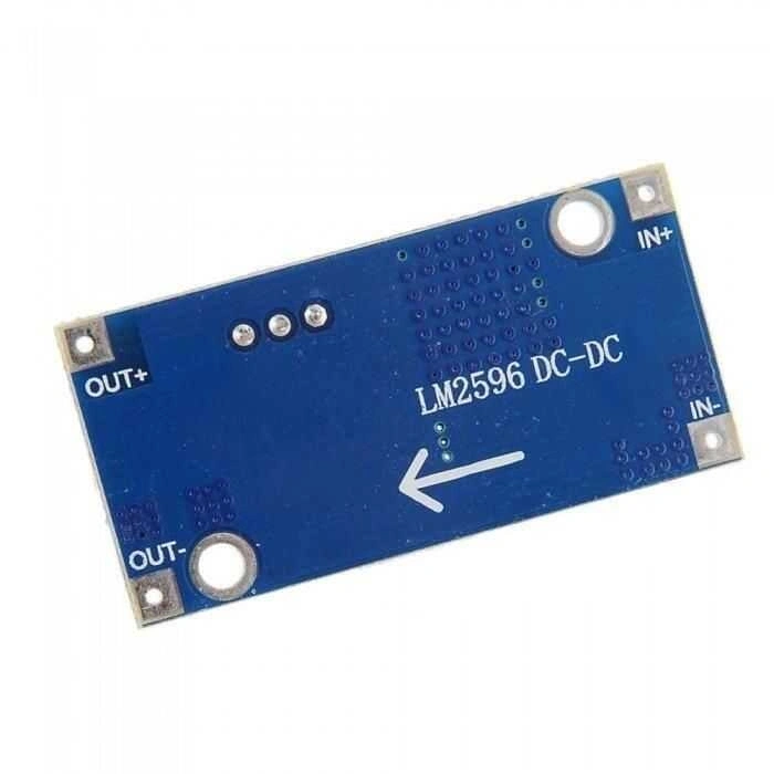 Mini Ayarlanabilir 3A Voltaj Regülatör Kartı - LM2596-ADJ LM2596 regülatörü, voltaj düşürücü anahtarlama regülatörünün kolay ve rahat tasarımı için ideal olan monolitik entegre devredir. 3A yük taşıma yeteneğine sahiptir. Üzerindeki trimpot ile çıkış voltajını 1.25-30V arasında ayarlayabilirsiniz. Voltaj düşürücü modül olduğu için giriş gerilimini her zaman çıkış geriliminden yüksek ayarlamanız gerekir. LM2596 dönüştürücü bir anahtar modlu güç kaynağı olduğundan, verimliliği, özellikle yüksek giriş gerilimlerinde olmak üzere, popüler üç terminalli lineer regülatörlere kıyasla oldukça yüksektir. Robotik projelerinizde kolayca kullanabilirsiniz. 150 kHz'lik bir anahtarlama frekansında çalışır, böylece düşük frekanslı anahtarlama regülatörleri için gerekenden daha küçük boyutlu filtre bileşenlerine izin verir. Not: İlk kullanım sırasında trimpotun uzun süre çevrilmesi gerekir. Voltajın düştüğünü görene kadar trimpotu çeviriniz. Teknik Özellikler Modül Özellikleri: İzole edilmemiş step-down anahtarlama regülatörü Giriş voltajı: DC 4-35V Çıkış Voltajı: Ayarlanabilir 1.25 30V DC (Giriş çıkıştan 1.5V daha büyük olmalıdır) Çıkış Akımı: Nominal 2A, maks. 3A (Ek ısı emici gerekli) Dönüşüm verimliliği: % 92'ye kadar Minimum düşme gerilimi: 1,25V Voltaj regülasyonu: % 0.5 Dinamik tepki hızı: % 5 200uS Anahtarlama Frekansı: 150KHz Devre koruması : SS36 Çalışma sıcaklığı: Endüstriyel sınıf (-40 ila + 85 ° C) Yük regülasyonu: % 0,5 Not: İlk kullanımda çıkış voltajını düşürün, potansiyometreyi saatin tersi yönünde yaklaşık 7-8 tur boyunca yavaşça çevirin. Kullanmadan önce nasıl kurulur: Güç girişinin özelliklerde belirtilen giriş voltajından daha büyük olmadığından emin olun. Multimetreyi DC Voltaj olarak ayarlayın. Ayar potansiyometresini yavaşça istediğiniz gerilime getirin. .