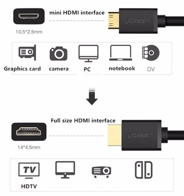 - Kablo Tipi: Mini HDMI (Tip C) to Standart HDMI (Tip A)