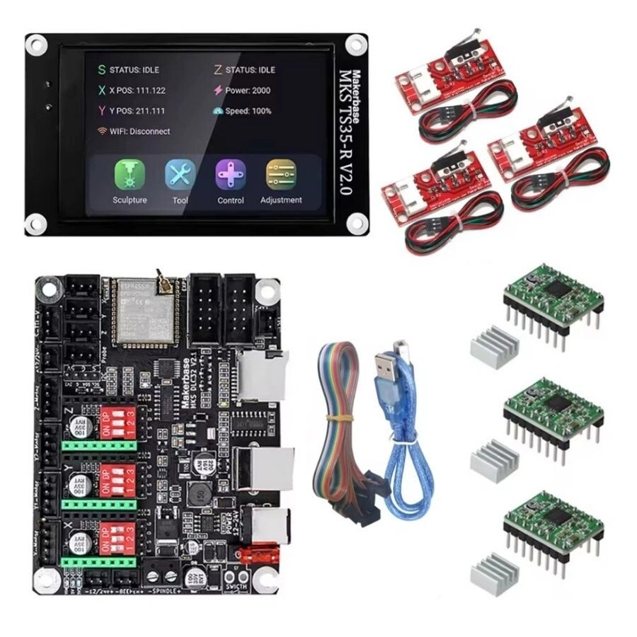 MKS DLC32 v2.0 GRBL CNC Kontrol Kartı Seti + TS35-R LCD Ekran MKS DLC32 v2.0 GRBL CNC Kontrol Kartı Seti + TS35-R LCD Ekran, masaüstü lazerler ve CNC makineleri için özel olarak tasarlanmış çevrimdışı bir kontrol ünitesidir. 32 bit yüksek hızlı ESP32 modülü ve entegre WIFI işlevi ile donatılmıştır. Bu kart MKS DLC ile uyumludur ve ayrıca GRBLaser ve LightBurn PC yazılımlarıyla da kullanılabilir. Çeşitli masaüstü gravür makineleri için uygun güçlü ve çok yönlü bir kontrol cihazı sunar. Github Kullanım Kılavuzu Paket İçeriği MKS DLC32 v2.0 GRBL CNC kontrol kartı TS35-R LCD Ekran 3x A4988 Step Motor Sürücü 3X 3 Boyutlu Yazıcı Limit Switch Bilgisayar Bağlantı Kablosu Ekran Bağlantı Kablosu Özellikler Hızlı gravür için 32 bit yüksek hızlı ESP32 modülü. Uzaktan kumanda ve izleme için entegre WIFI işlevi. Kolay kullanım için isteğe bağlı 3,5 inç renkli dokunmatik ekran (ayrı satılır). MKS DLC, GRBLaser ve LightBurn PC yazılımlarıyla uyumludur. Çeşitli cihazları bağlamak için geniş giriş ve çıkış portu yelpazesi. İstikrarlı ve güvenilir performans. MKS DLC32 kartı, masaüstü gravür makineleri için güçlü ve çok yönlü bir kontrol cihazı arayan herkes için mükemmel bir seçimdir. Kullanımı ve kurulumu kolaydır ve çok çeşitli özellikler ve işlevler sunar. Teknik Özellikler MCU ESP32-WROOM-32U( 32bits) MCU Freq. 240MHz FLASH 8192KBytes RAM 520KBytes Power Input DC12v/24v Laser Speed.