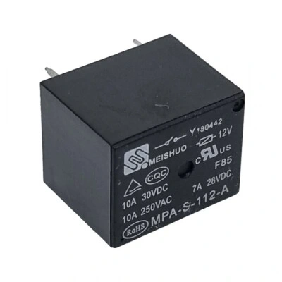 MPA-S-112-A 12V 10A Röle 4-Pin. Çeşitli elektronik uygulamalarda ve üzerinde röle bulunan neredeyse tüm modellerde tercih edilen röledir.