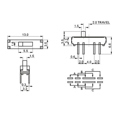 MSS-23D18 2P3T 3 Konumlu 8 Pin Sürgülü Slide Switch