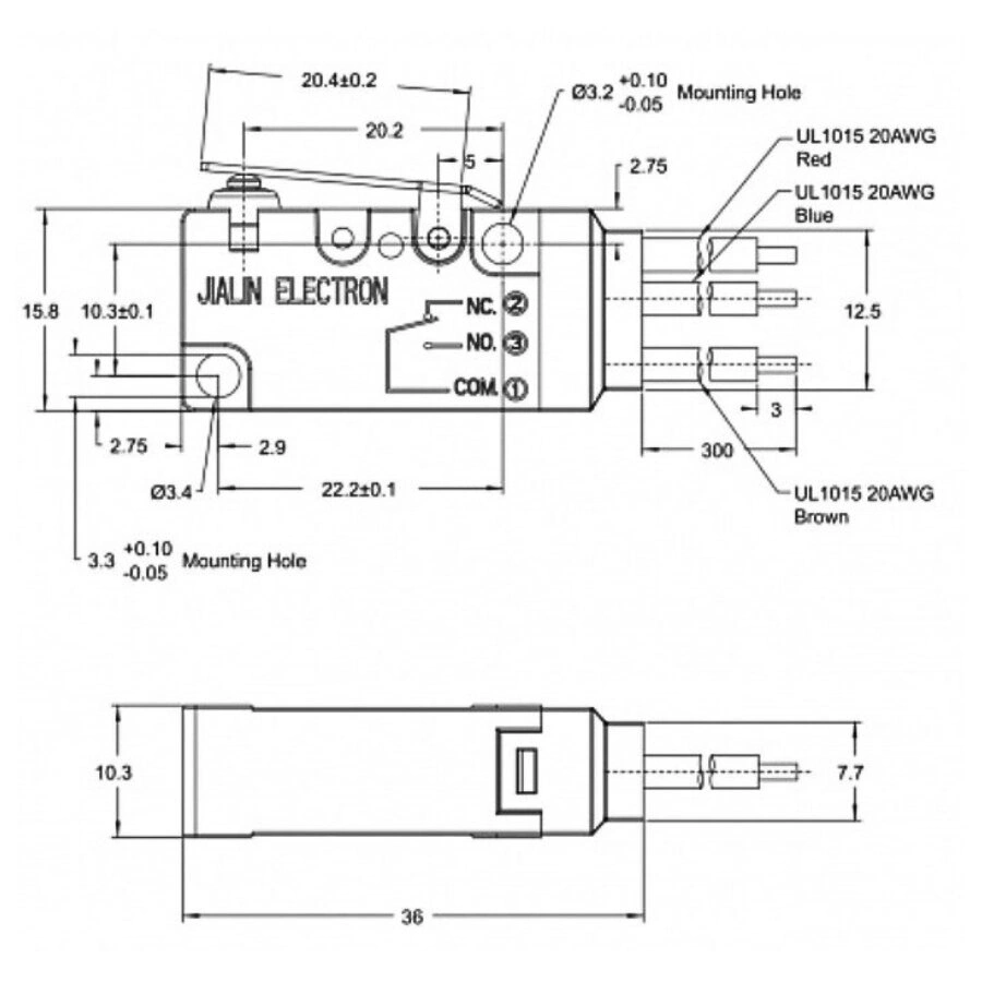 MT3-BAA300L84-GA300 SPDT NO+NC 3-Pin Su Geçirmez Kablolu Micro Switch MT3-BAA300L84-GA300 SPDT NO+NC 3-Pin Su Geçirmez Kablolu Micro Switch, su ve toz geçirmez (IP67) yapısı ile zorlu ortam koşullarında bile güvenilir performans gösteren anlık anahtardır. Bu seri, otomotiv elektroniği, beyaz eşya, endüstriyel kontrol sistemleri, bisiklet elektrik sistemleri ve dış mekân uygulamalarında güvenilir bir tetikleme elemanı olarak öne çıkar. Özellikler Nominal Akım & Gerilimi: 10.1A 125/250VAC 300gf max SPDT NO+NC IP Derecesi: IP67