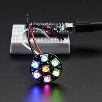 NeoPixel Halka, montaj delikli yuvarlak bir PCB üzerinde yedi küçük 5050 (5mm x 5mm) akıllı RGB LED\\\'e sahiptir. Birlikte zincirleme yapabildiğiniz kadar kontrol etmek için sadece bir mikrodenetleyici pibi kullanmanız yeterli!