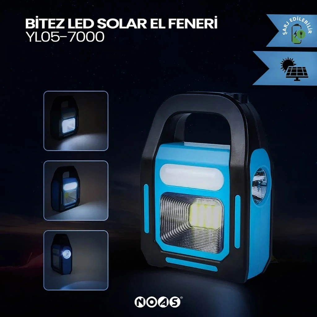 NOAS Şarj Edilebilir Bitez Solar El Feneri, güneş enerjisiyle şarj olabilen, pratik ve dayanıklı bir aydınlatma çözümüdür. Acil durumlar, kamp ve günlük kullanım için ideal olan bu fener, kompakt tasarımıyla her yere taşınabilir.