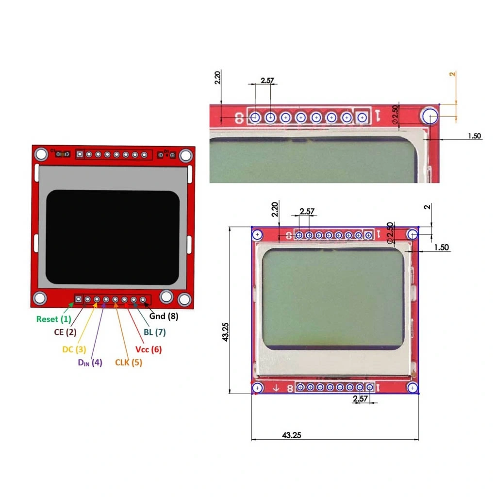 - Bağlantı Pinleri: 8 pin (RST, CE, DC, DIN, CLK, VCC, BL, GND)