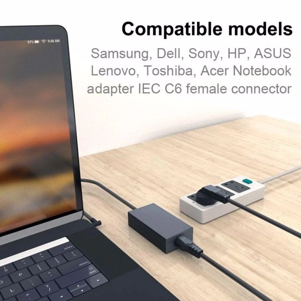 C6 (dişi yonca) girişine sahip tüm adaptörlerle uyumludur. Dell, HP, Lenovo, Acer, Asus gibi birçok marka bu standardı kullanır.