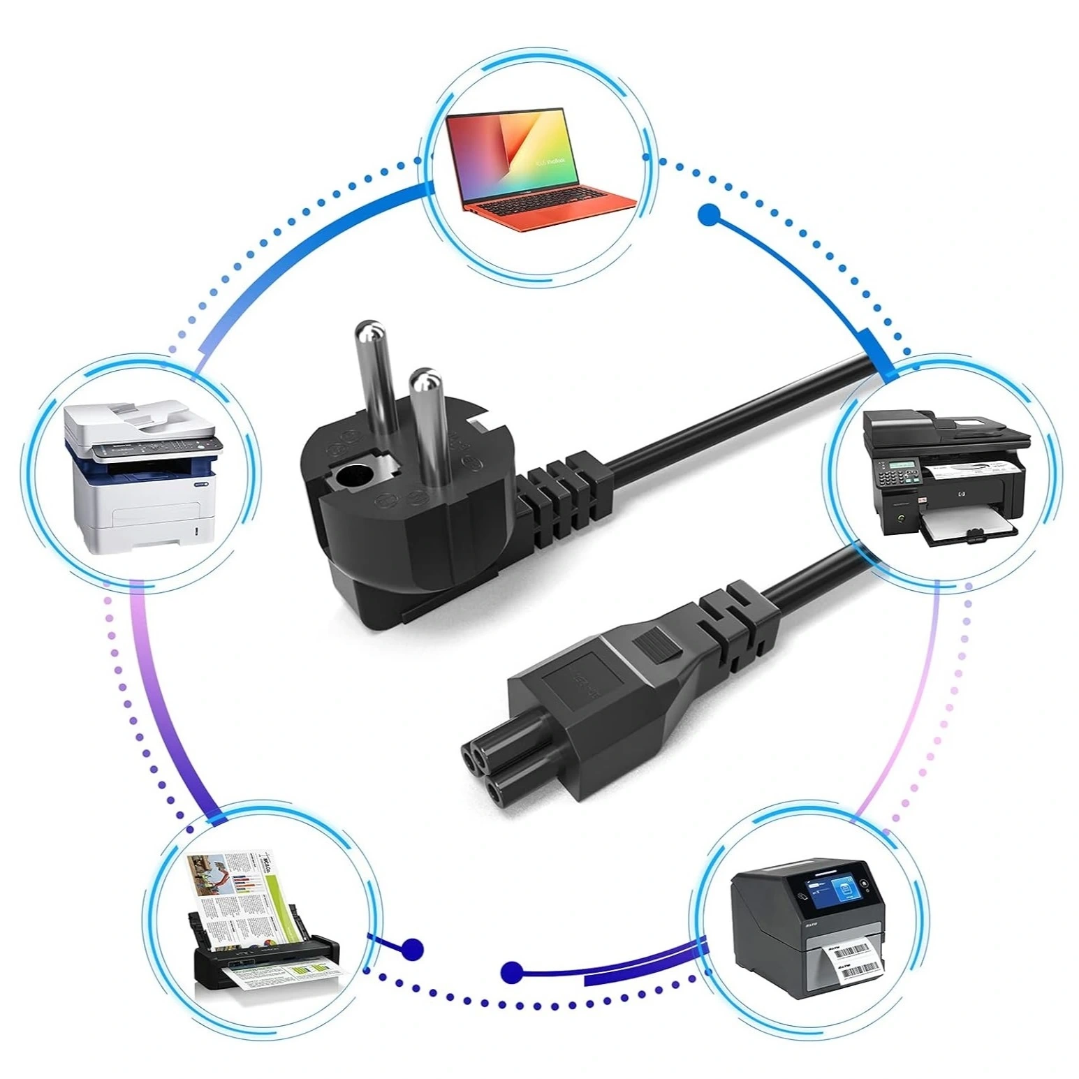 Notebook PC Laptop Güç Power Adaptör Kablosu Yonca Kablo 1.5m, dizüstü bilgisayar adaptörleri için tasarlanmış standart bir güç kablosudur. Prizden dizüstü bilgisayar adaptörüne elektrik iletimini sağlayan bu kablo, yonca şeklindeki üç yapraklı konektörü sayesinde yaygın olarak kullanılan tüm dizüstü bilgisayar adaptörleriyle uyumludur.