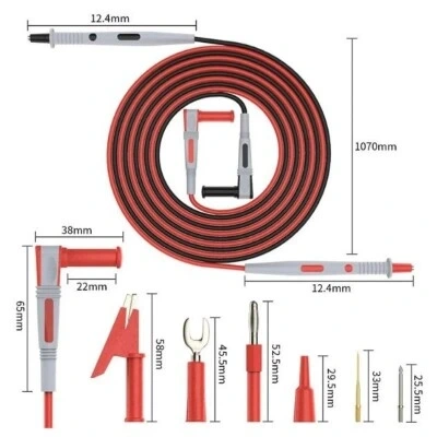 P1503B Multimetre Prob Seti, elektrik kablo devrelerini test etmeye birebir üründür. Ekstra 8 adet değiştirilebilir prob uçları bulunmaktadır. ( 4 adet nikel kaplama bakır, 4 adet altın kaplama bakır). Analog ve dijital multimetre aletleri için kaliteli multimetre probudur.