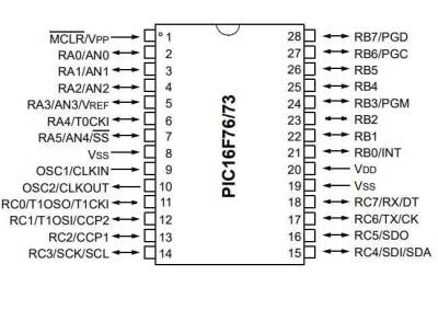 Bu güçlü (200 nanosaniye komut yürütme) ancak programlaması kolay (yalnızca 35 tek kelime komut) CMOS FLASH tabanlı 8 bitlik mikro denetleyici, Microchip'in güçlü PIC® mimarisini 28 pimli pakette toplar ve PIC16C5X, PIC12CXXX ve PIC12CXXX ile yukarı doğru uyumludur. PIC16C7X cihazları. PIC16F73, 2 ek zamanlayıcı, 2 yakalama/karşılaştırma/PWM işlevine sahip 5 kanallı 8-bit Analog-Dijital (A/D) dönüştürücüye sahiptir ve senkron seri bağlantı noktası, 3 kablolu Seri Çevresel Arabirim (SPI) olarak yapılandırılabilir. ™) veya 2 kablolu Inter-Integrated Circuit (I²C™) veriyolu ve bir Evrensel Asenkron Alıcı Verici (USART). Tüm bu özellikler onu otomotiv, endüstriyel, ev aletleri ve tüketici uygulamalarında daha ileri seviye A/D uygulamaları için ideal kılar.
