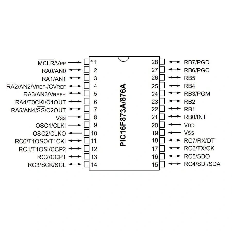 PIC16F873A-I/SP, Microchip firmasının kompakt yapıda yüksek performanslı 8-bit mikrodenetleyicisidir. SPDIP-28 paketinde sunulan bu entegre, 20 MHz'e kadar çalışma frekansı ile orta ölçekli projelere ideal çözüm sunar.