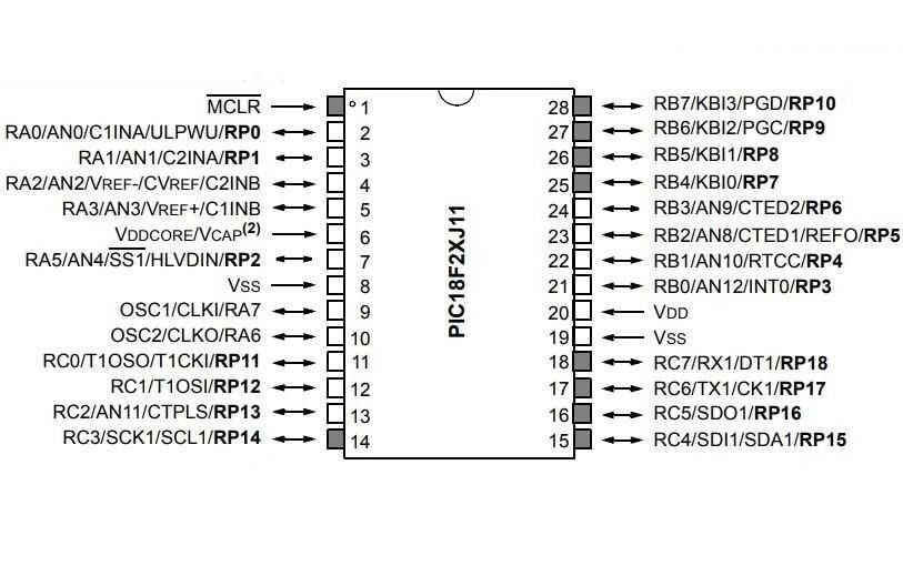 PIC18F26J11-I/SP DIP-28 48MHz Mikrodenetleyici PIC18 J serisindeki maliyete duyarlı uygulamalar için küçük bir pakette çevresel esnekliğe sahip düşük güç ve yüksek performanslı 8 bit MCU sağlar. Yeni özellikler arasında düşük güçlü uygulamalar için Derin uyku modu, çevre birimlerini G/Ç pinlerine eşlemek için tasarım esnekliği için Çevresel Pin Seçimi ve kolay kapasitif dokunmatik kullanıcı arayüzleri için bir CTMU modülü yer alıyor. PIC18F46J11 ailesi, küçük bir pakette sağlam bir çevre birimi seti ile uygun maliyetli, düşük güçlü çözümler gerektiren uygulamalar için idealdir. Teknik Özellikler Ürün Kodu PIC18F26J11 Program Hafıza Tipi Flash Program Hafızası Boyutu 64kB Veri Yolu Genişliği 8-Bit Maks Saat Frekansı 48 MHz Veri RAM Boyutu 3.68 kB I/O Sayısı 16 Zamanlayıcı Sayısı 5 Çalışma Gerilimi Aralığı (V) 2 - 2.75V Pin Sayısı 28 PIC18F26J11 Datasheet.
