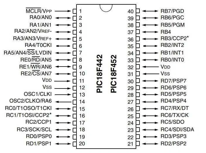 PIC18F452-I/P DIP-40 40MHz Mikrodenetleyici