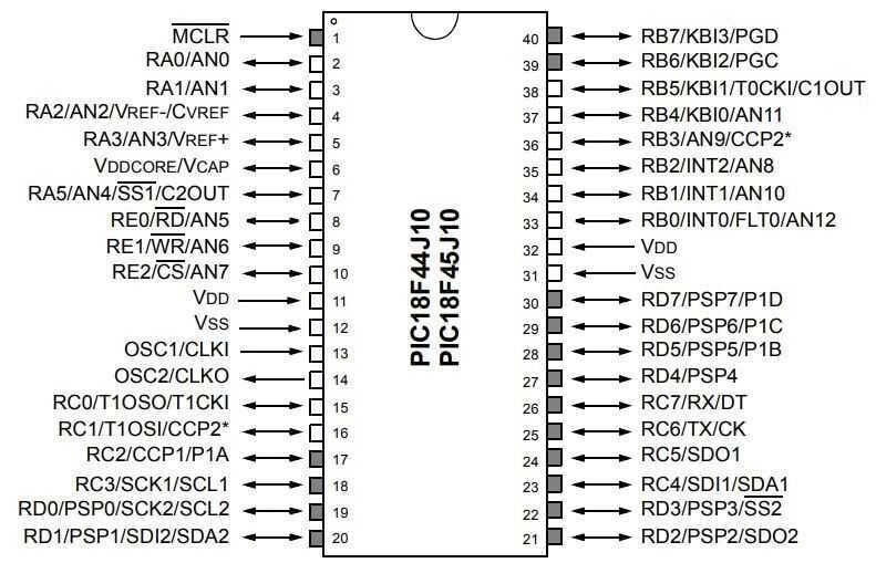PIC18F45J10-I/P DIP-40 40MHz Mikrodenetleyici